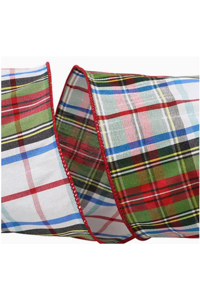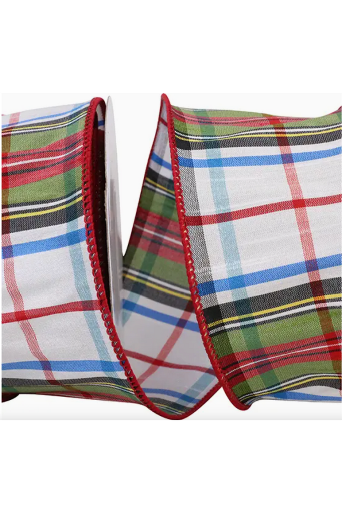 Stewards Plaid Dupioni Wired Edge, White, 4 in, 10 Yards