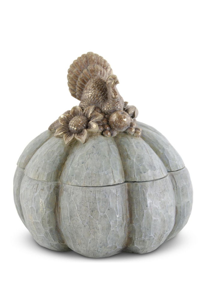 GREEN CARVED PUMPKIN CONTAINER W/TURKEY