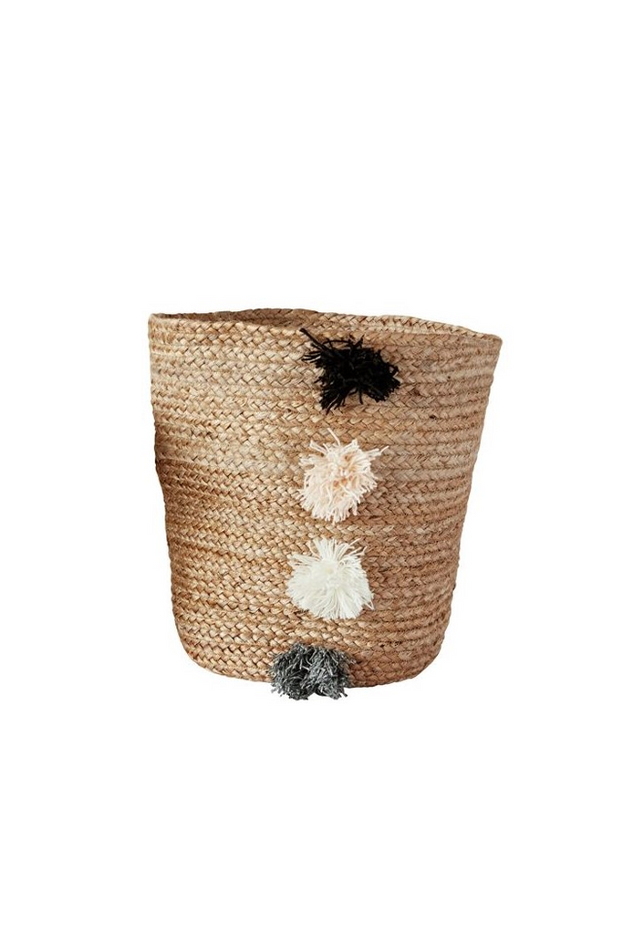 JUTE BRAIDED BASKET W/ POM POMS LARGE