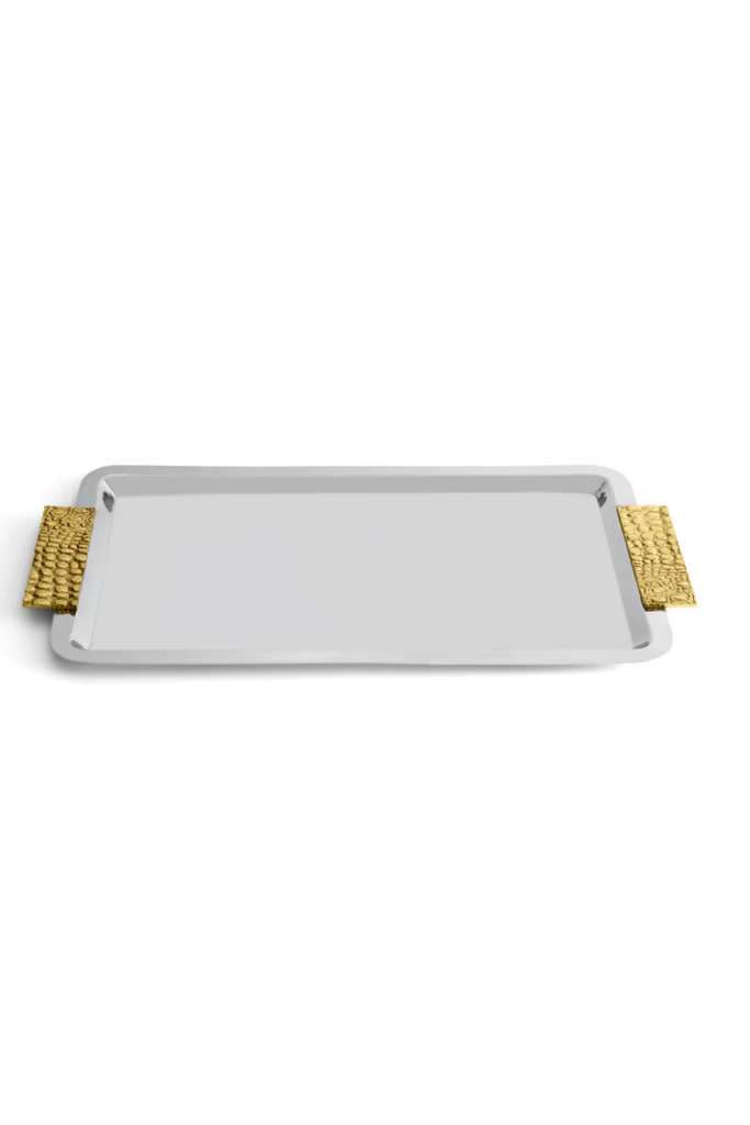 RUFOLO GLASS GOLD BASKETWEAVE LG ROUND PLATTER