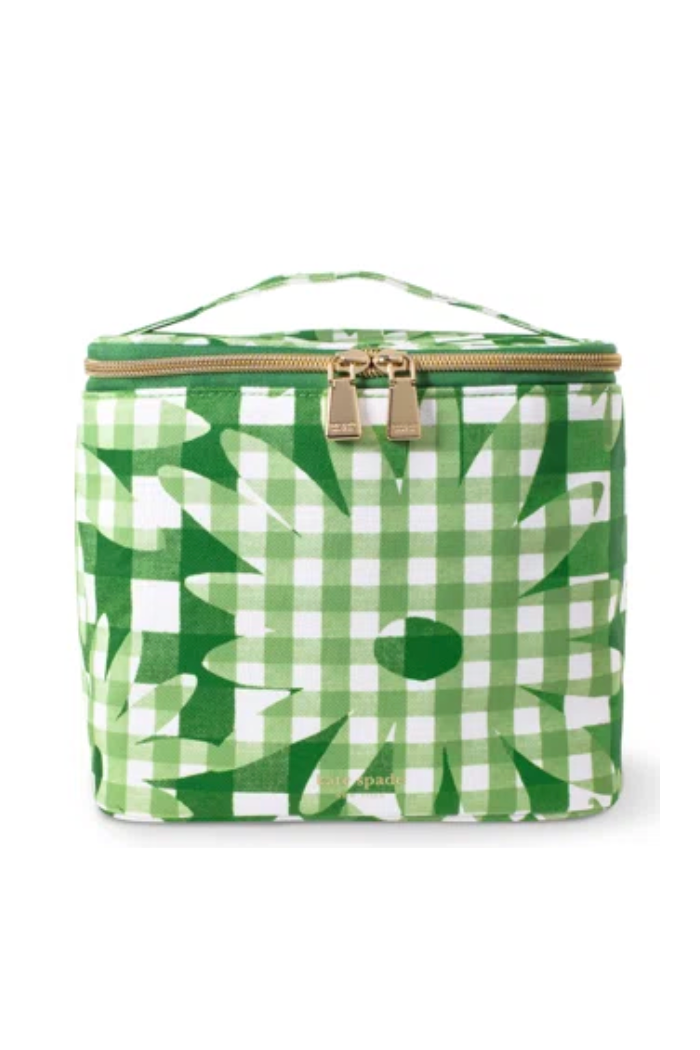 Make lunchtime even more enjoyable with this Kate Spade New York Daisy Gingham lunch tote. Features a silver insulated lining and top handle.