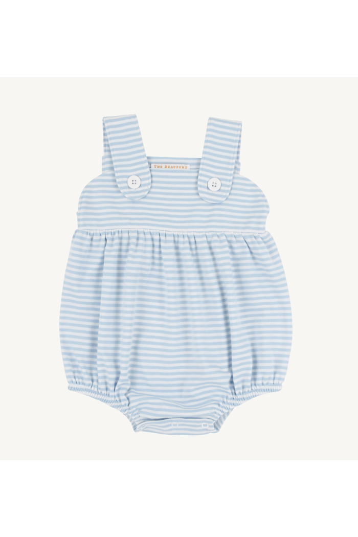 The Bingham Bubble in Beale Street Blue Stripe is a classic boys' outfit that never goes out of style. This charming one-piece is perfect for playtime, parties, or any occasion. The Bingham wardrobe staple that will have him looking dapper all day long!