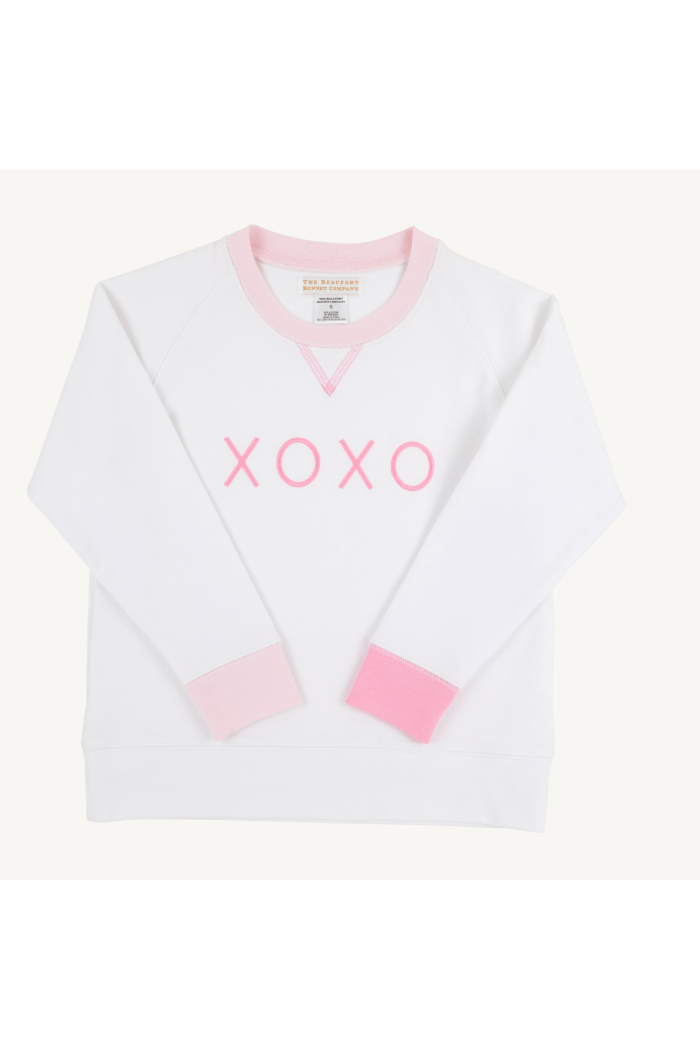 The Cassidy Comfy Crewneck is a must-have for your little ones wardrobe! Featuring an adorable Palm Beach Pink XOXO applique, this Cassidy is perfect for Valentine's Day celebrations and beyond!