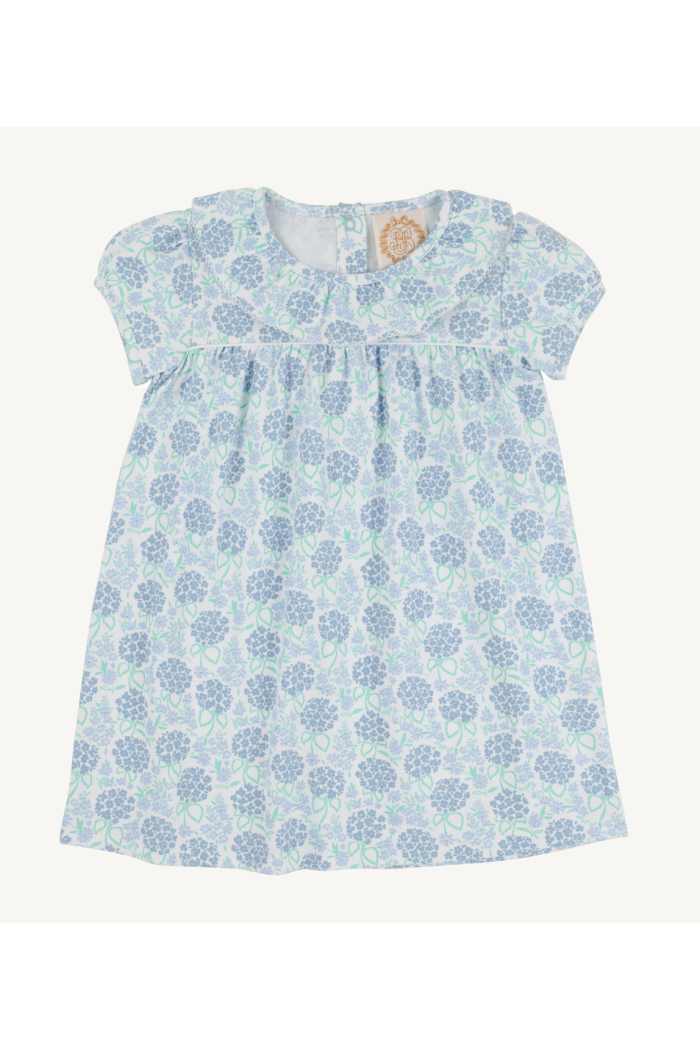 The Short Sleeve Ramona Ruffle Dress in Handful of Hydrangeas with Worth Avenue White is a garden party dream. This girls' dress features a stunning hydrangea print and sweet ruffle details that make it perfect for special occasions, birthday celebrations, and picture-perfect moments. Comfortable, twirl-worthy, and absolutely charming, it's the dress that makes her feel like the belle of every gathering.