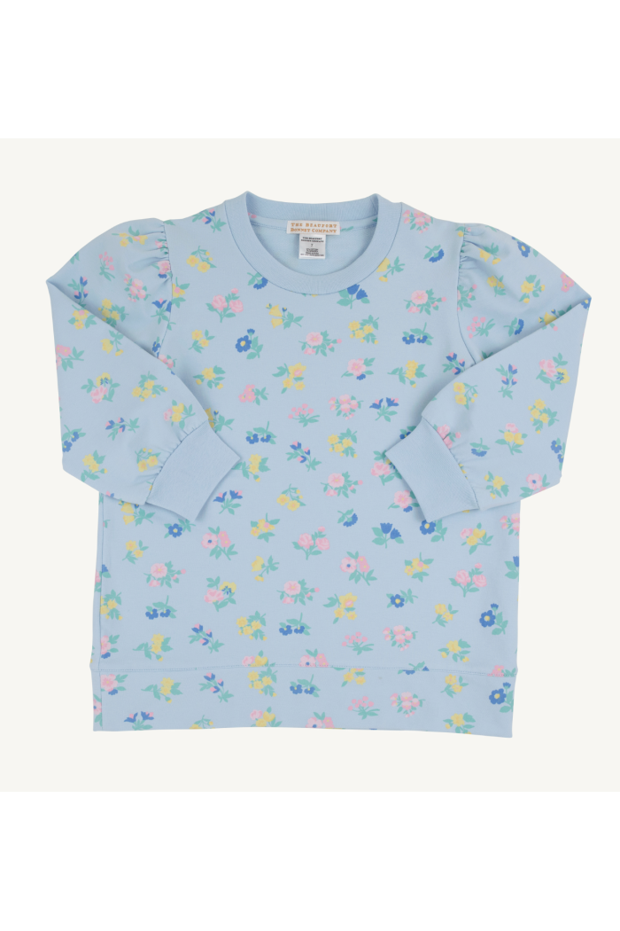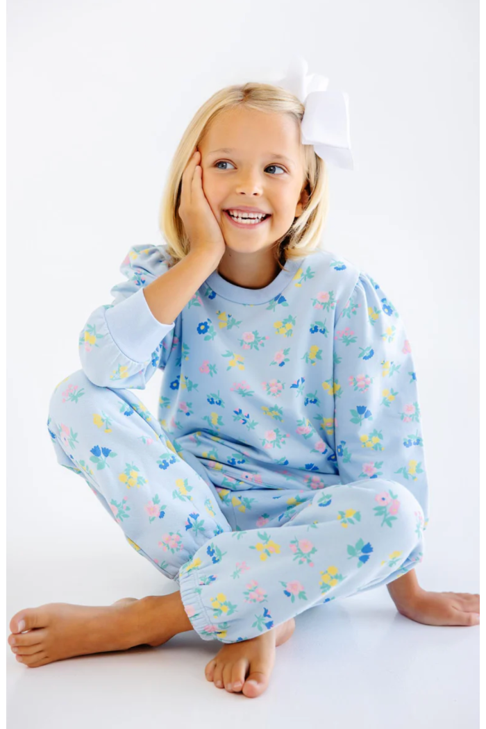 The Is it Saturday Sweatshirt in Little London Flowers with Buckhead Blue is the cozy essential your little lady will reach for every single day! This adorable sweatshirt features a charming floral print, puff sleeves and a soft fabric that's perfect for school days and weekend adventures. Made for comfort and style, this versatile piece will have her asking to wear it on repeat! Also available in Women's sizes for an adorable mommy and me matching moment!