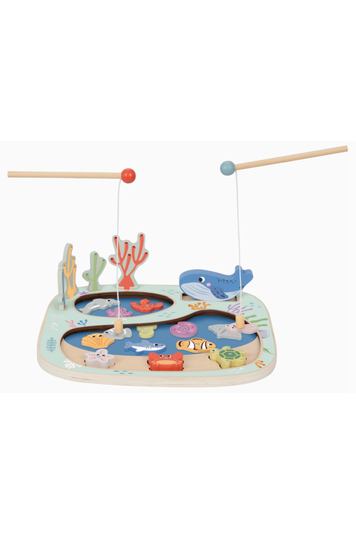 A wooden playset that turns fine-motor practice into seaside fun, the Ocean Fishing Wooden Activity Board invites kids to 'catch' colorful sea creatures with magnetic rods. The sturdy board features painted ocean scenes and chunky wooden pieces that slide along tracks for open-ended play. This TOKIPLAY activity toy helps develop hand-eye coordination and problem solving through gentle, imaginative gameplay. Lightweight and easy to clean, it’s ideal for preschool playtime and learning centers.
