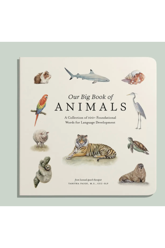 Designed by a professional watercolor artist and licensed speech therapist, Our Big Book of Animals includes charming watercolor illustrations and foundational first words that will help you build your child's vocabulary. The durable materials and small book size also make them perfect for your baby's little hands.