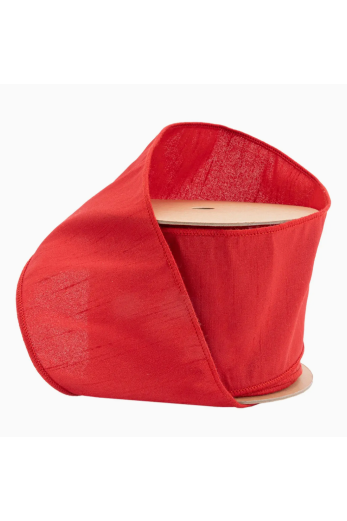 4" Wired Dupioni Ribbon | Red | 10 Yard Roll