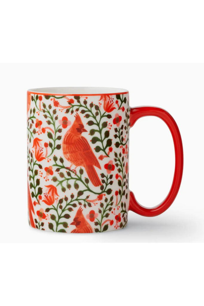 With elegant cardinal illustrations and a red handle and rim, this seasonal porcelain mug brings a bit of cheer to the morning routine.