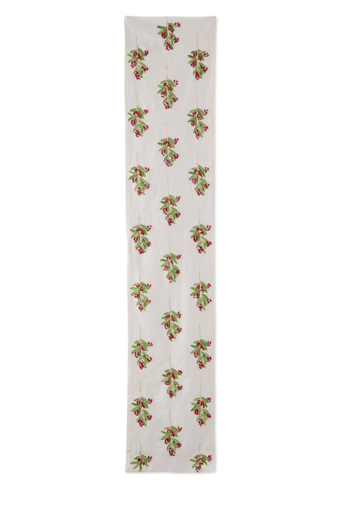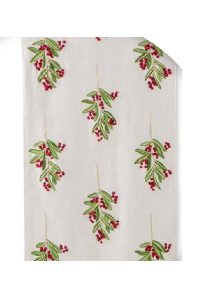 HOLLY LEAVES & BERRIES TABLE RUNNER 72"