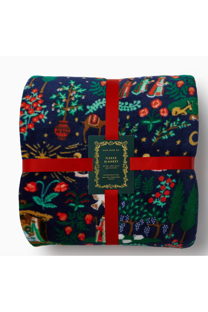 Curl up on chilly nights with this cozy blanket, featuring sweet Nativity-inspired illustrations. Made of plush fleece, the blanket comes packaged with a ribbon so it’s ready to gift.