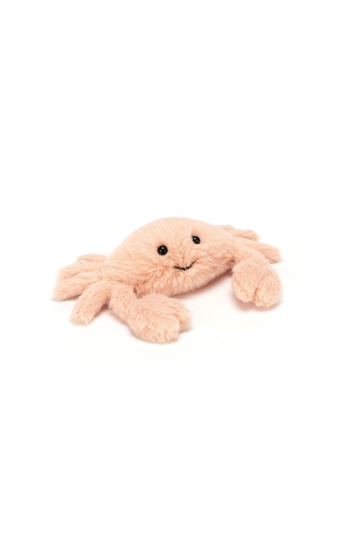 Fluffy Crab is hopping out of the rockpool to wave hello with those soft squidgy claws! This snuggly beach scamp is so, so happy, with a sweet stitchy smile and shiny black eyes. Adorably apricot, this kooky crab is a gorgeously goofy gift.