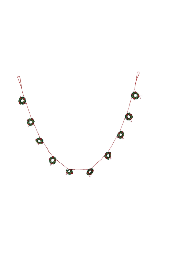 72"L x 3-1/2"H Handmade Wool Felt Holiday Wreaths Garland