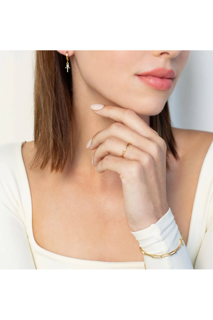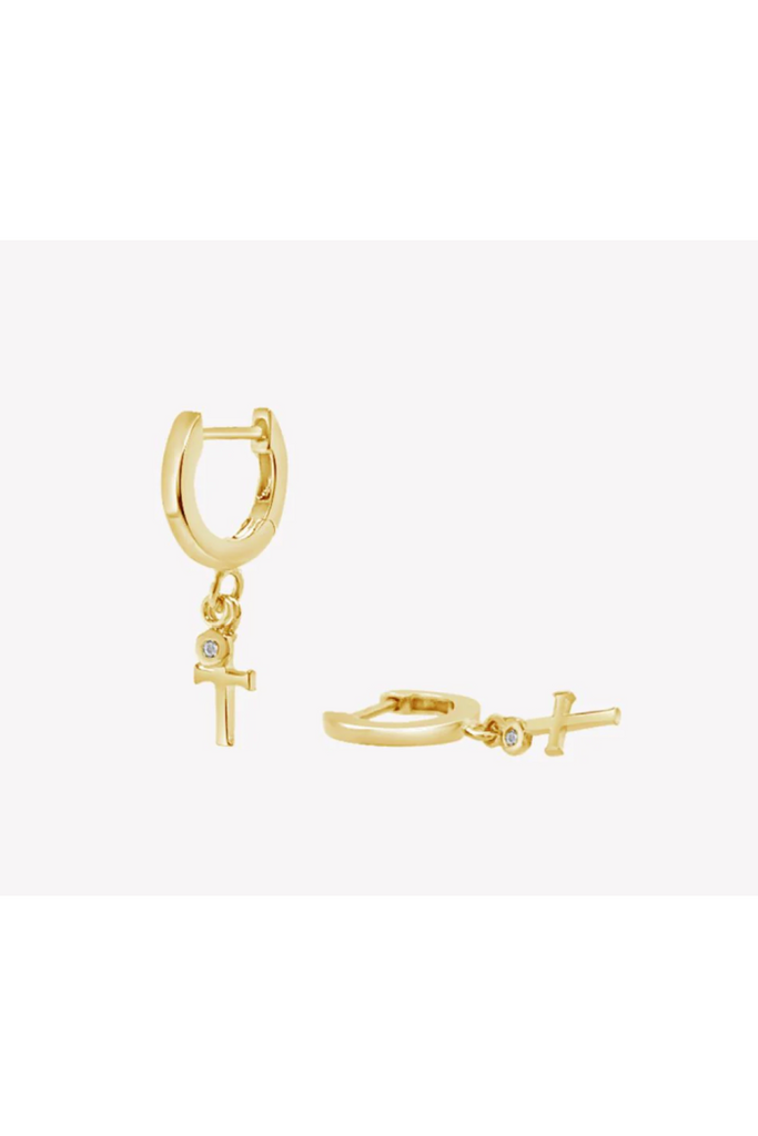CALVARY CROSS HUGGIE HOOP EARRINGS-GOLD