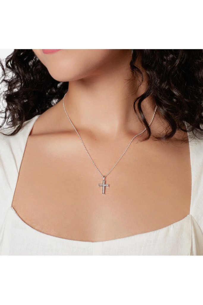 LUMINOUS CROSS PENDANT NECKLACE-SILVER