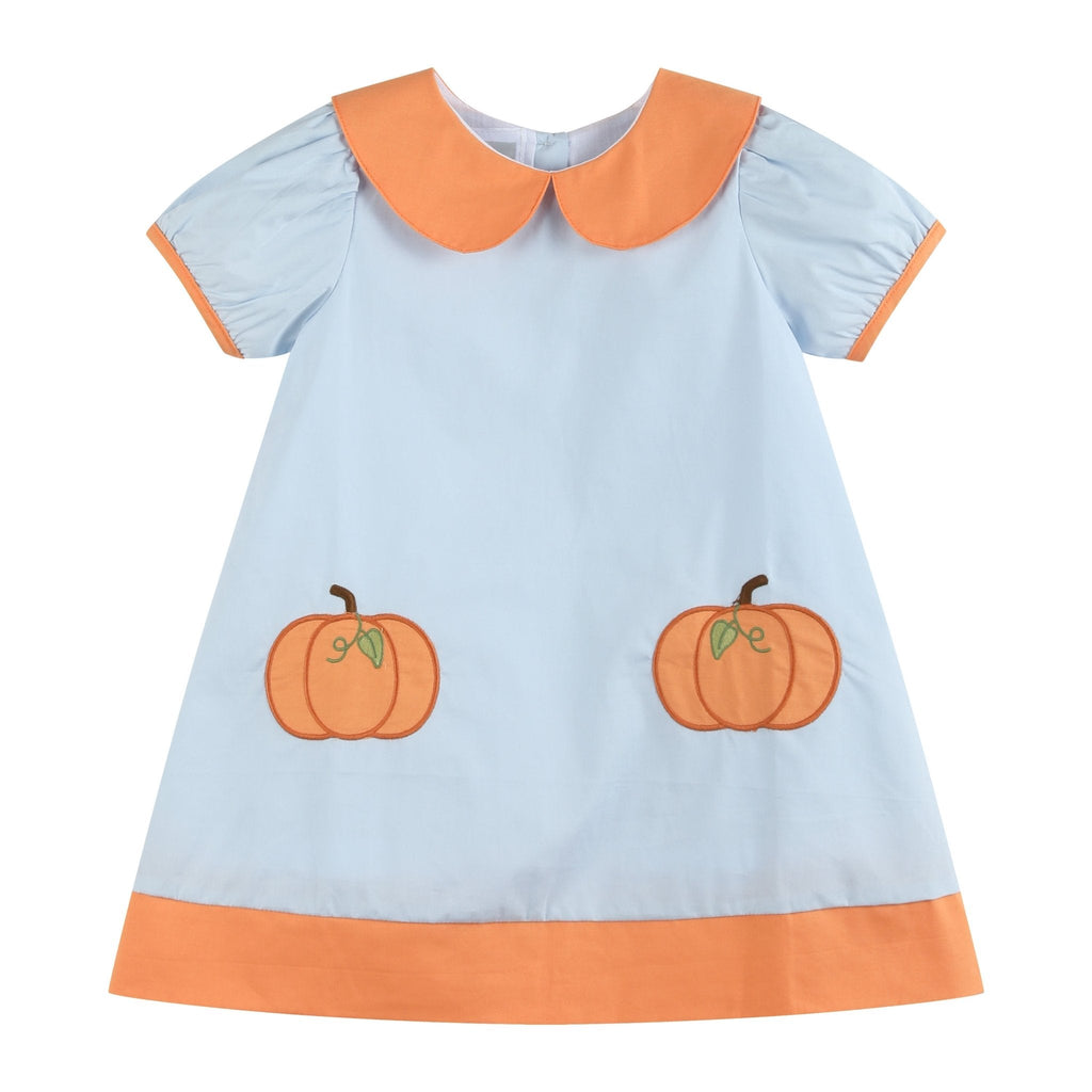 Light Blue Pumpkin Vine Smocked Collared Romper