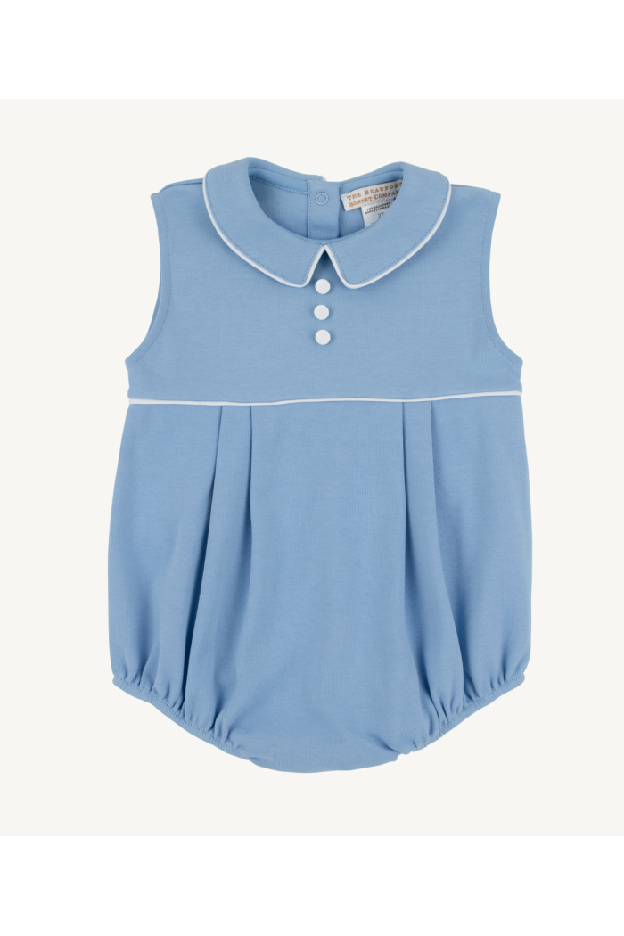 Our Sleeveless Bradford Bubble in Sarasota Sky and Worth Avenue White brings breezy sophistication to your little one's warm-weather wardrobe. The classic silhouette and premium fabric ensure comfort during summer celebrations, beach outings, or everyday adventures while maintaining that polished preppy look. A timeless piece that makes dressing for sunshine effortless.