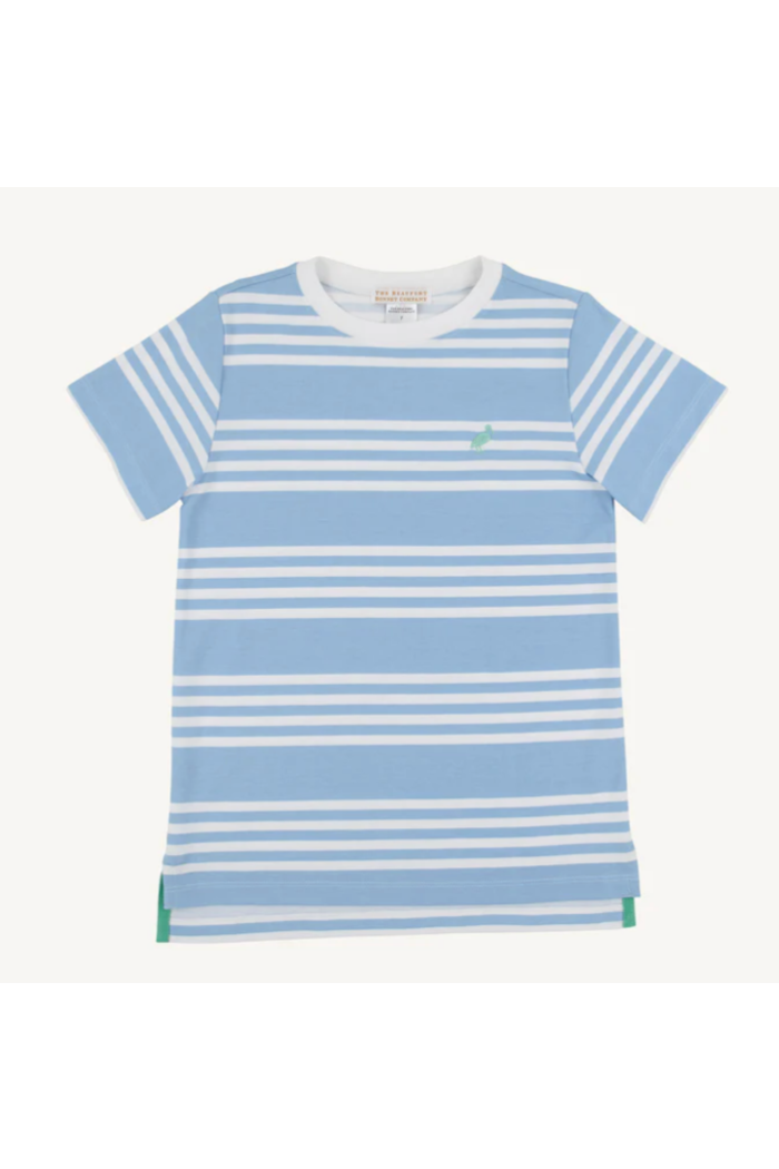 Our Carter Crewneck in Saddle Ridge Stripe (Sarasota Sky) is designed for effortless preppy style! With comfort and durability in mind, it's the perfect layering piece for spring adventures from the playground to Sunday brunch. Crafted with premium fabrics and thoughtful details that make dressing your little one a no brainer!