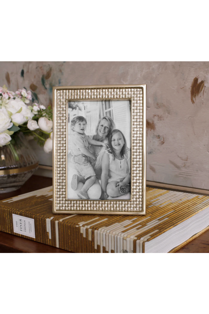 Glam in gold! The Beatriz Ball GIFTABLES Sierra Modern Tiffany 4 x 6 Frame (Gold) is richly detailed and handsomely styled and made special by its proprietary gold-tone surface. With its Sierra Modern metallic finish, the glistening texture provides a light-catching border for a favorite photo. From our GIFTABLES Collection featuring handmade and artfully designed Beatriz Ball items at irresistible prices. Packaged in a lovely gift box, you'll love this handsome frame in one of our most glamorous styles. Makes a luxurious gift for anyone on your list. An original Beatriz Ball design handmade of an FDA safe, easy-care aluminum alloy with a special metallic finish. Tarnish free.