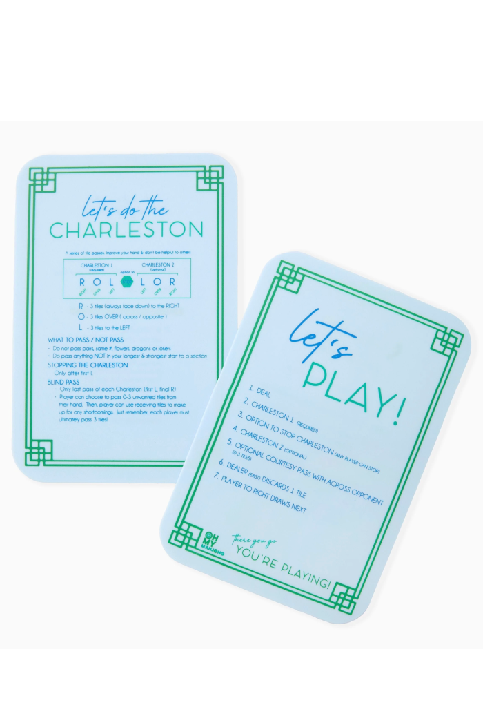 A compact Light Blue Shuffler designed to streamline casual mahjong sessions. The shuffler features two printed plastic trays with game instructions and a clean teal border for quick setup and play. OH MY MAHJONG crafted this accessory for tabletop play and easy handling, ideal for game nights and travel.