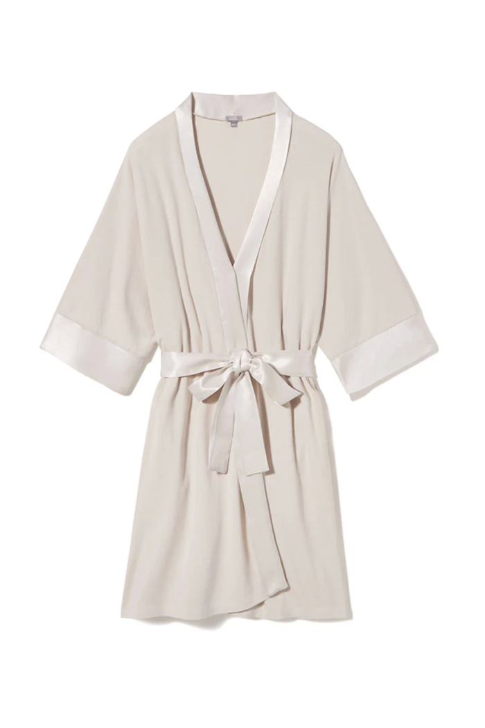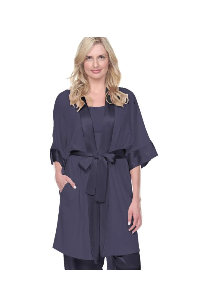 Satin shawl collar & 3/4 sleeves adds an elegant touch