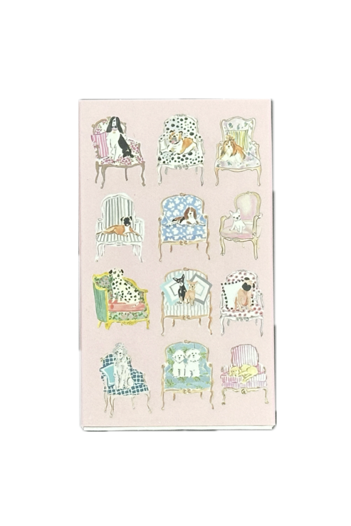 A charming Sitting Dogs Matchbox illustrated with vintage-style pups perched on patterned chairs. This small boxed match set from Saint Austin Company adds a playful, decorative touch to tabletops and gift bundles. The slim paperboard case features a soft pastel palette and detailed watercolor art for a boutique, collectible feel. Keep it on a coffee table or pair it with candles and home scents for a thoughtful, styled vignette. Matches included