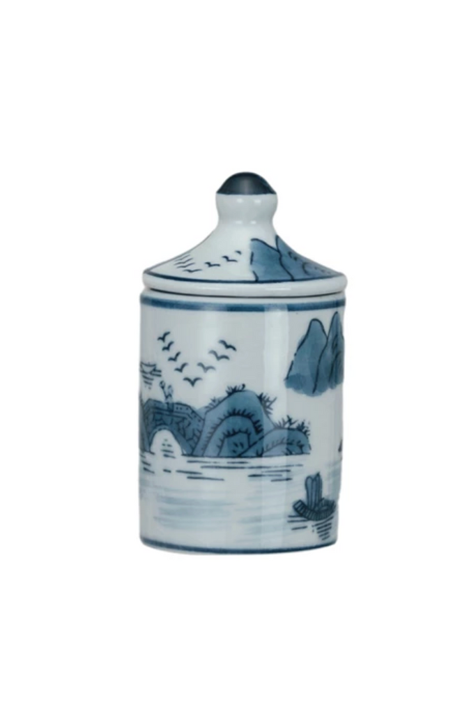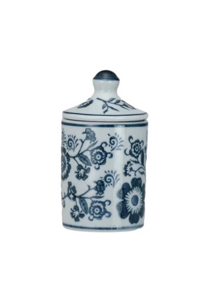 A compact stoneware container for storing spices and dry seasonings, the Stoneware Spice Jar pairs function with a hand-drawn blue scroll motif. The lidded silhouette keeps contents protected while adding a classic, collectible look to your countertop or pantry. This piece works as both everyday kitchen storage and a decorative accent for styled shelving.