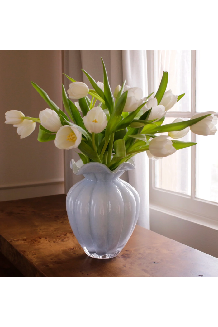 Bring a pop of serene color to the table. The GLASS Vento Large Vase in periwinkle offers a cool blue tone with a sleek, sculptural shape—ideal for fresh blooms, branches, or as a centerpiece.