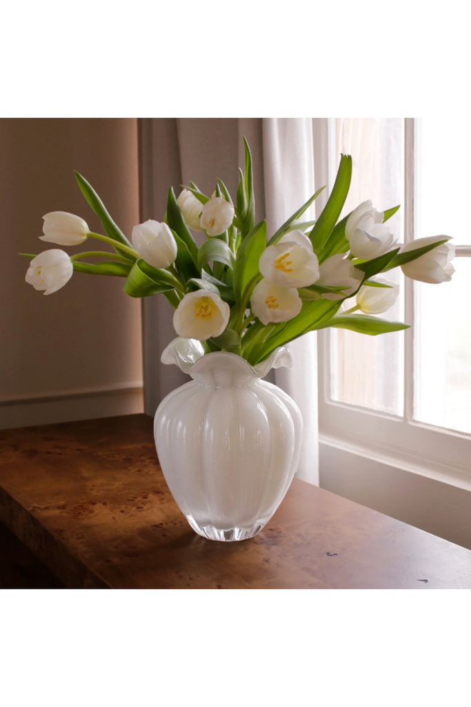 Sculptural simplicity meets modern elegance. The GLASS Vento Large Vase in cream features a softly curved silhouette with a glossy cream finish, making it ideal for fresh blooms, greenery, or as a striking decorative accessory on its own.