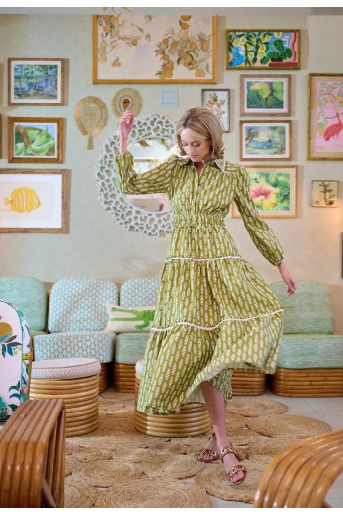 BANYAN LONG SLEEVE DRESS-GREEN LEAF
