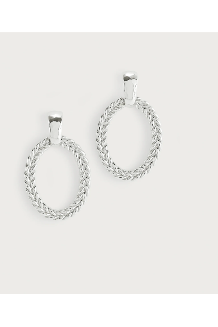 Sculpted in a gleaming metal finish, the Cheval Ring Earrings are lightweight hoops with a braided rope texture that catches the light. These oval hoop earrings hang from polished bails for a refined silhouette that works from day to night. The design by Anabel Aram balances classic equestrian-inspired detailing with modern proportions. Wear them alone for a subtle statement or layered with other delicate jewelry.