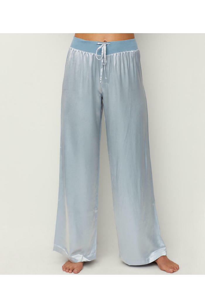 The PJ Harlow Jolie Satin Pant is made of a whisper-soft, lustrous satin. These palazzo sleepwear pants are lightweight, drape beautifully and feel buttery soft against the skin.