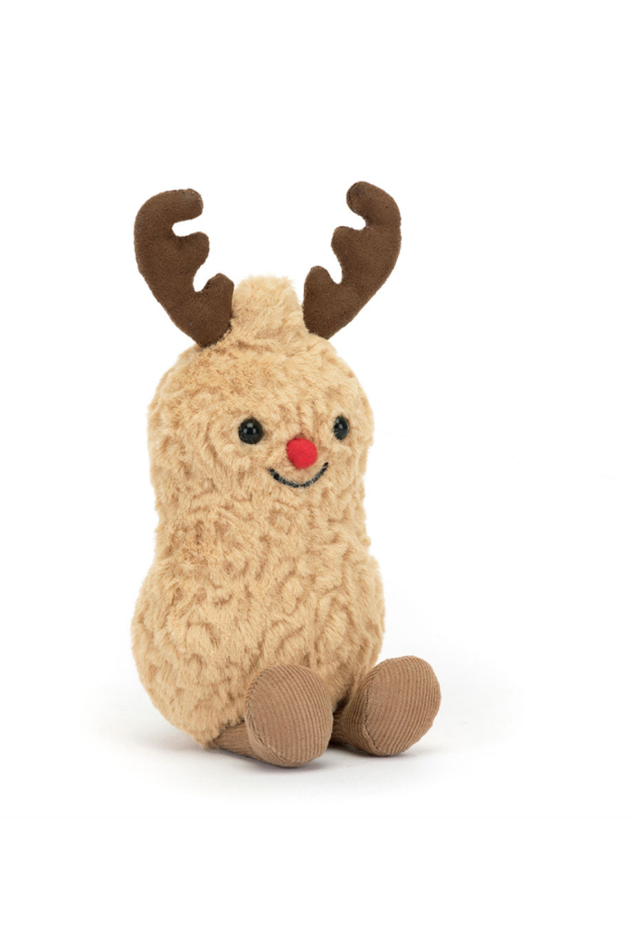 Everyone's in the holiday spirit, especially Amuseables Peanut Reindeer! Adorably textured, this funny legume has a cozy fur shell, red suedette nose, cocoa antlers and truffle cord boots. With a funky tuft haircut and embroidered grin, this peanut's cracked Christmas!
