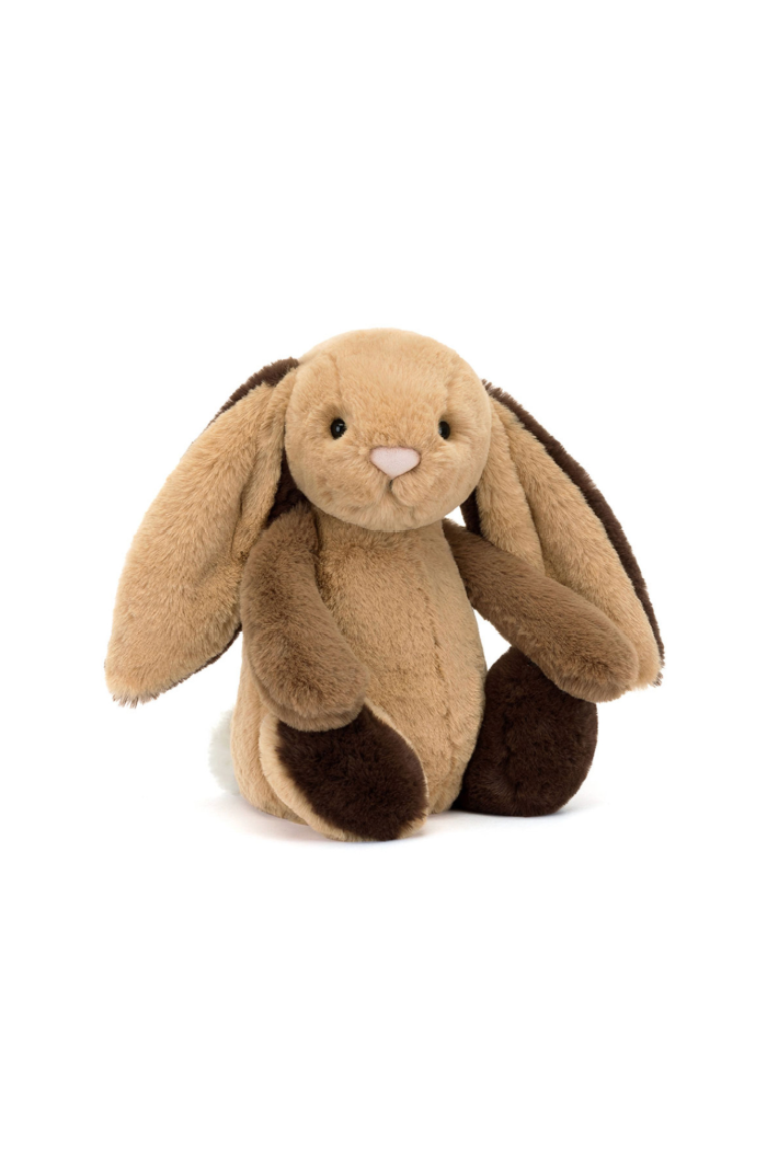 Bashful Patchwork Brown Bunny is soft and sweet in many shades of brown! From toffee to honey to chocolate, this bunny is a collage of iconic Bashful softness. With a fluffy cream bobtail and suedette pink nose, this bunny is the perfect companion to add a little joy to every day.