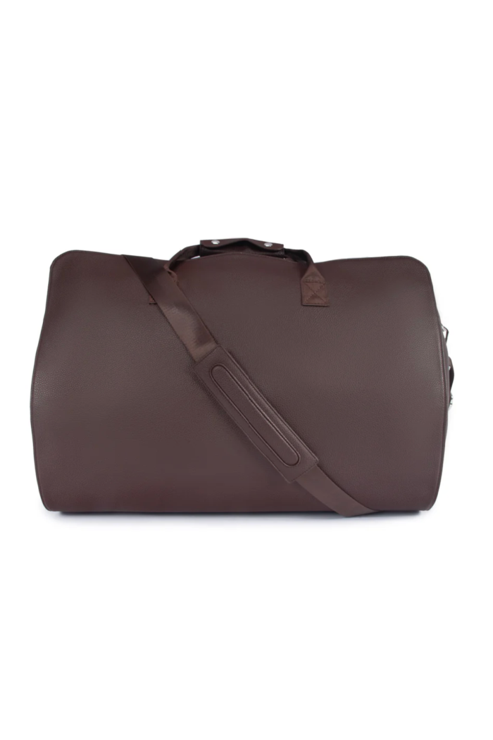 The Brett 2 Piece Duffel & Garment Bag features a detachable design with a garment bag for wrinkle-free formal wear and a spacious duffel for all your essentials. Both bags are carry-on friendly and can be attached for seamless, stylish travel. The garment bag includes an exterior pocket for quick access to your passport or phone, while a trolley sleeve on both bags ensures easy navigation through airports and streets. The duffel offers a roomy interior with a zipper pocket and two open pockets for simple organization. A 51" adjustable nylon strap with a vegan leather shoulder pad ensures comfortable, hands-free carrying. Made from premium pebble vegan leather with sleek silver hardware, this bag combines function and style for your travels.