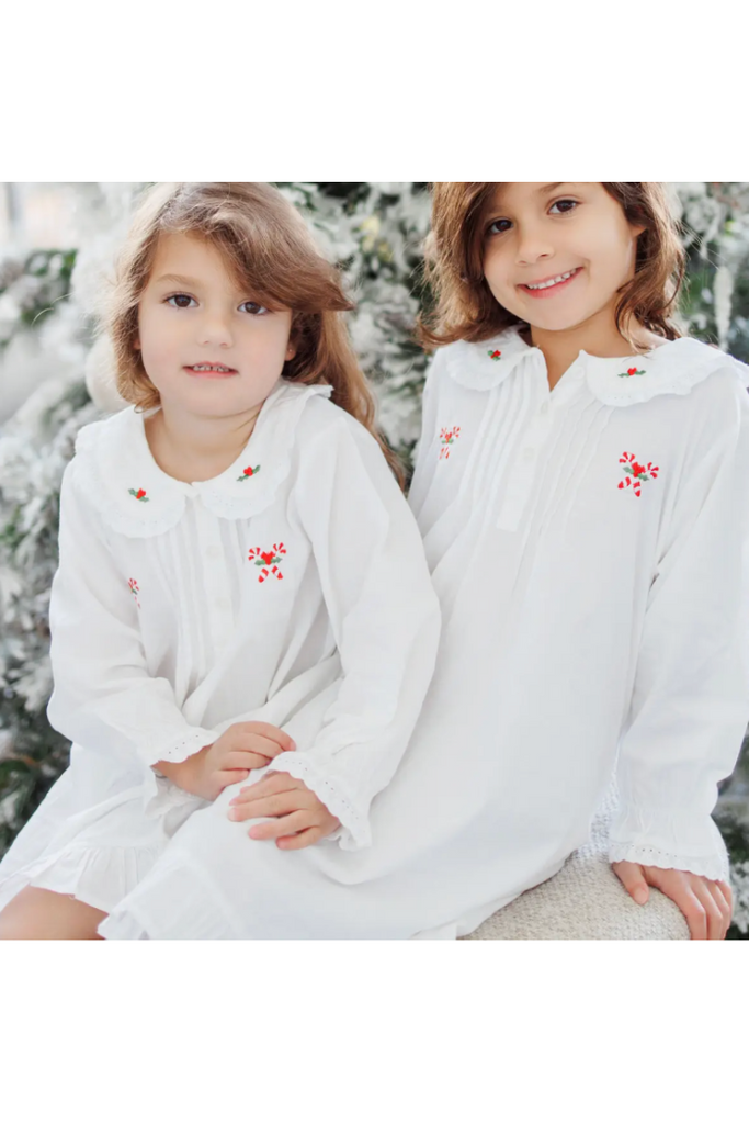 This darling little girl's white cotton Candy Cane dress is perfect for the holidays. Dress your little girl in this dress for a holiday dinner party, family Christmas photos and to open gifts on Christmas morning. All our little girl's white cotton dresses are for play time, girl time, story time or twirl time!