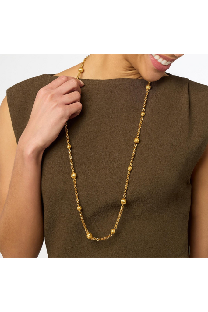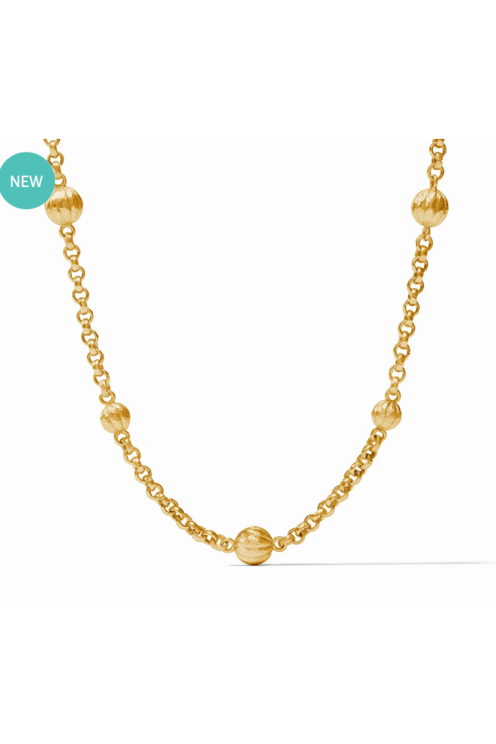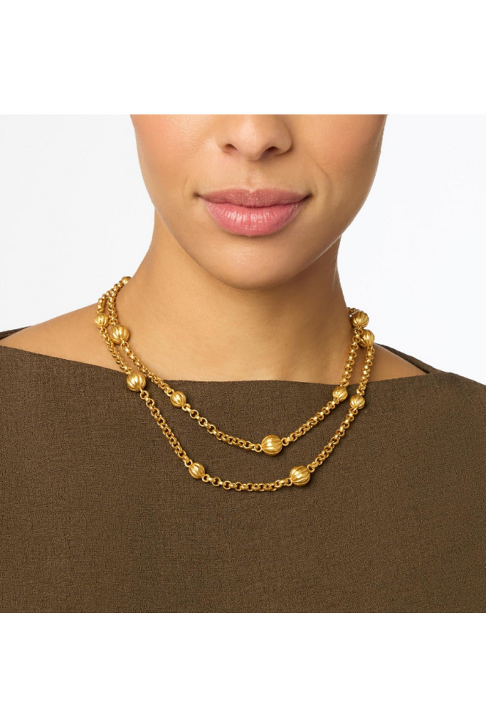 Fluted, lightly hammered golden spheres in alternating sizes, joined with delicate rolo chain.