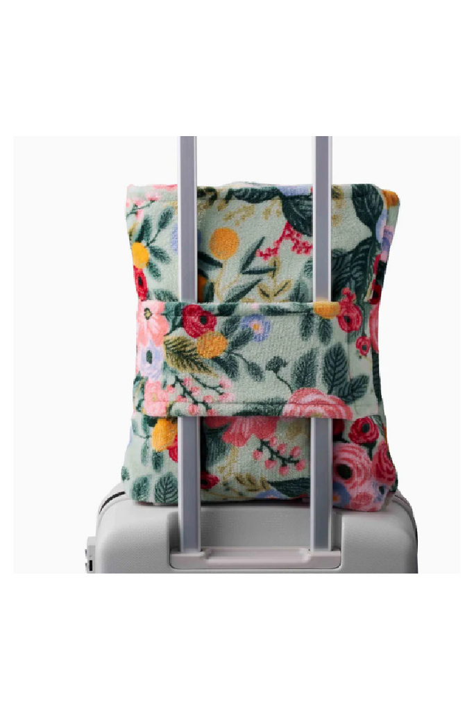 Make your adventures a little more cozy with a fleece blanket specifically designed for travel. The blanket folds into an attached pocket and becomes a travel pillow with a convenient trolley sleeve. Featuring our signature Garden Party floral print, the plush fleece blanket comes packaged with a ribbon so it’s ready to gift.