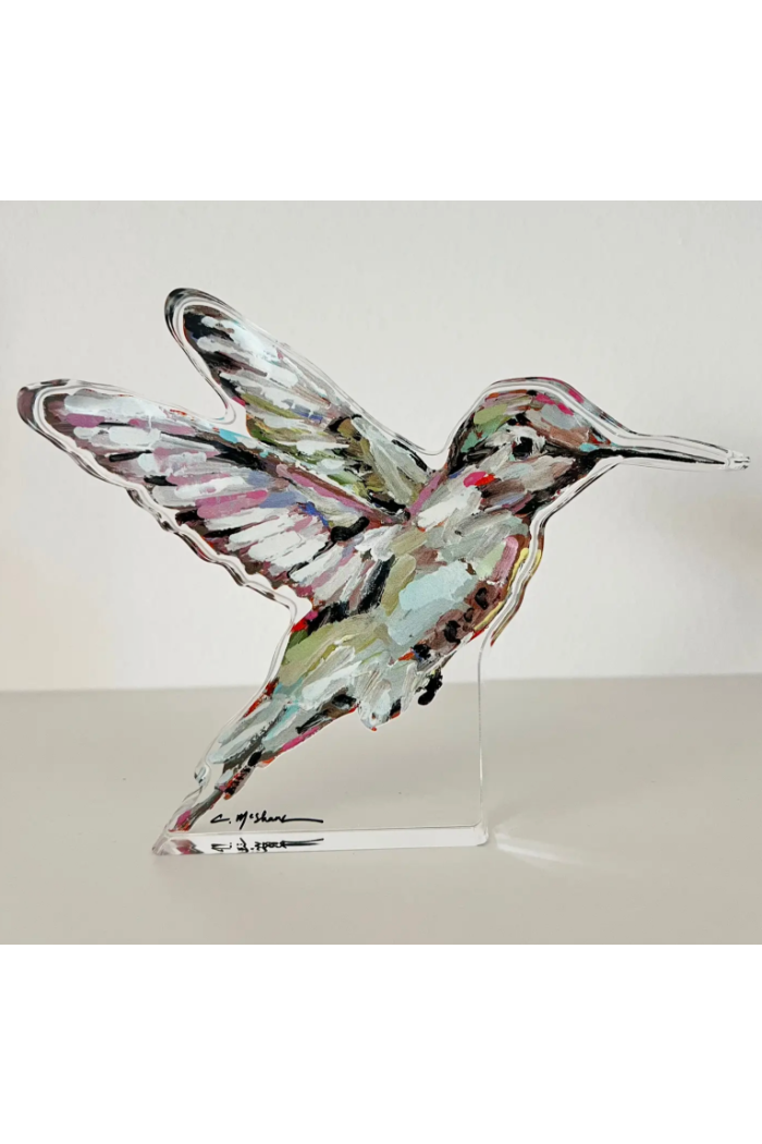 The art is affixed to a thick, weighted protective acrylic block giving a three dimensional appearance