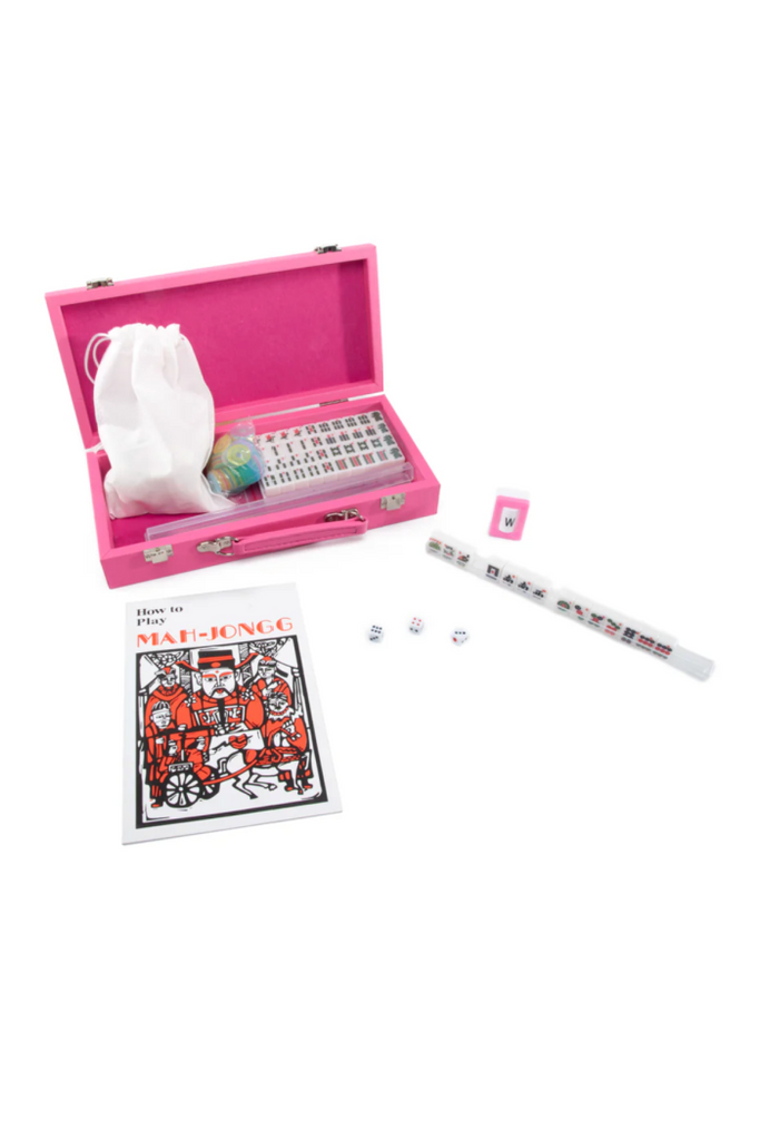 Our Mini Travel Mahjong Set is perfect for trips, journeys, or a fun game night at home! Compact and portable, it comes in a sleek vegan saffiano case with a handle for easy transport. Measuring just 12"x 5.625"x 2.25", it easily fits into your suitcase, backpack, or handbag. Despite its small size, this set includes everything you need for a great game. Inside are 4 clear acrylic trays to keep 166 premium 20mm tiles organized: 36 dots, 36 bams, 36 craks, 12 dragons, 16 winds, 16 flowers, 10 jokers, and 4 blank spares. It also includes 4 detachable acrylic pushers and stands, 3 large dice, 100 money chips, and 1 wind indicator. New to Mahjong? No worries! Clear instructions make it beginner-friendly but still fun for experts!