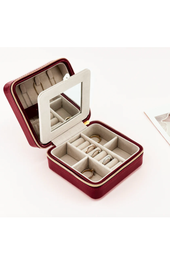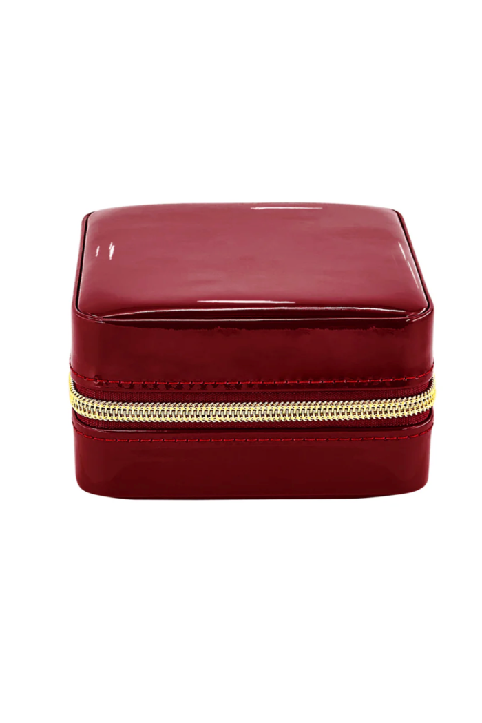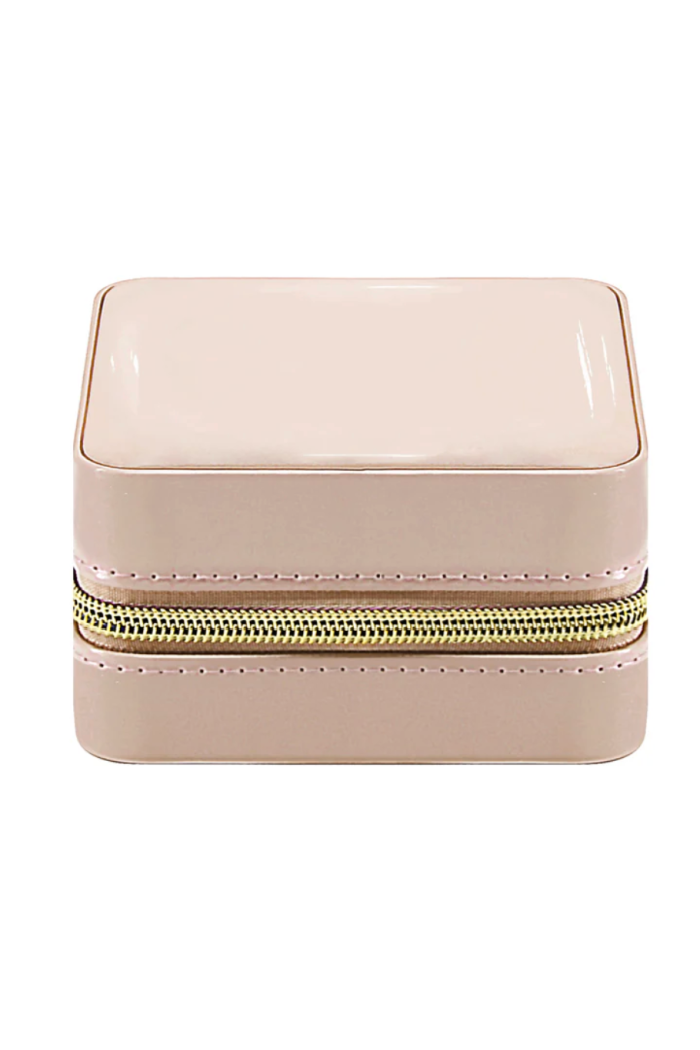 A compact travel case designed to keep jewelry organized on the go, the Pearl Travel Jewelry Case offers a polished exterior and secure zip closure. The glossy finish and structured square silhouette protect delicate pieces during transit. Inside, cushioned compartments and ring rolls (not visible here) are ideal for storing rings, earrings, and small necklaces. Lightweight and stylish, this case makes a refined travel essential for everyday wear pieces.