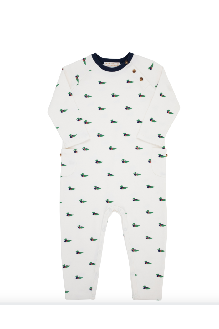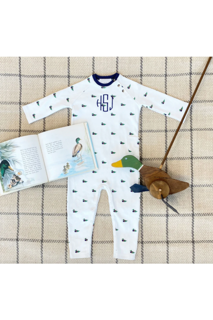 Our Rayburn Romper featuring Golf Club Quack Quacks with Tortoise Buttons is sure to look darling on your favorite little gent. This romper is perfect for the little guy on the go, and the snap closure makes it easy to change diapers!
