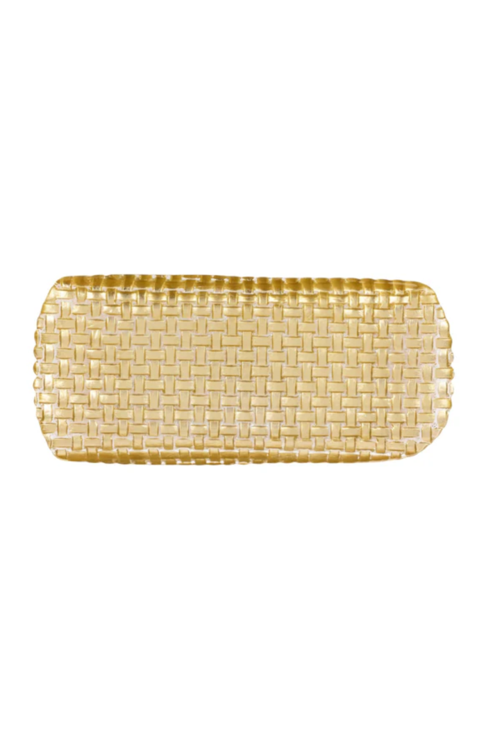 RUFOLO GLASS GOLD BASKETWEAVE LG RECTANGULAR TRAY