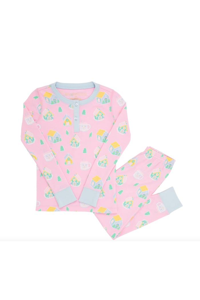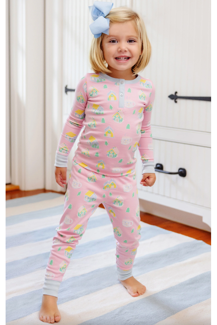 Turn bedtime into a gingerbread wonderland with our Sara Jane's Sweet Dream Set! Featuring Vivie's Gingerbread Village with Buckhead Blue, they’re made from the softest pima cotton fabric to keep your little girl comfy and cozy all night long. She’ll love twirling in these pjs and dreaming of sugary holiday adventures!
