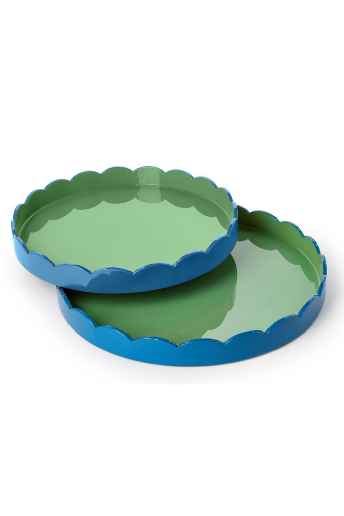 Scalloped Blue and Green Dual Tone Lacquered Trays-LARGE