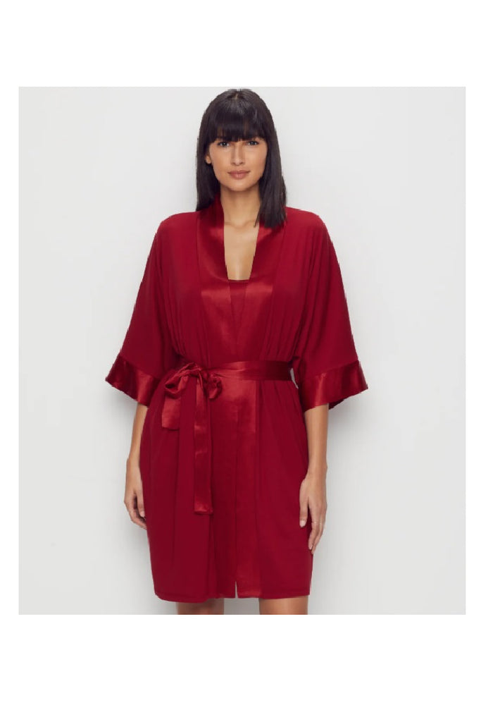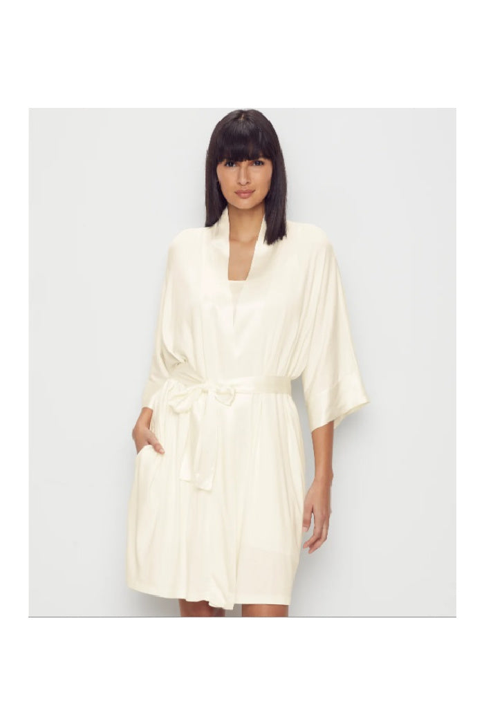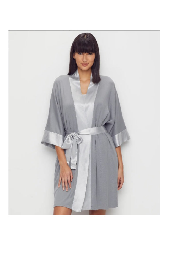 Satin shawl collar & 3/4 sleeves adds an elegant touch