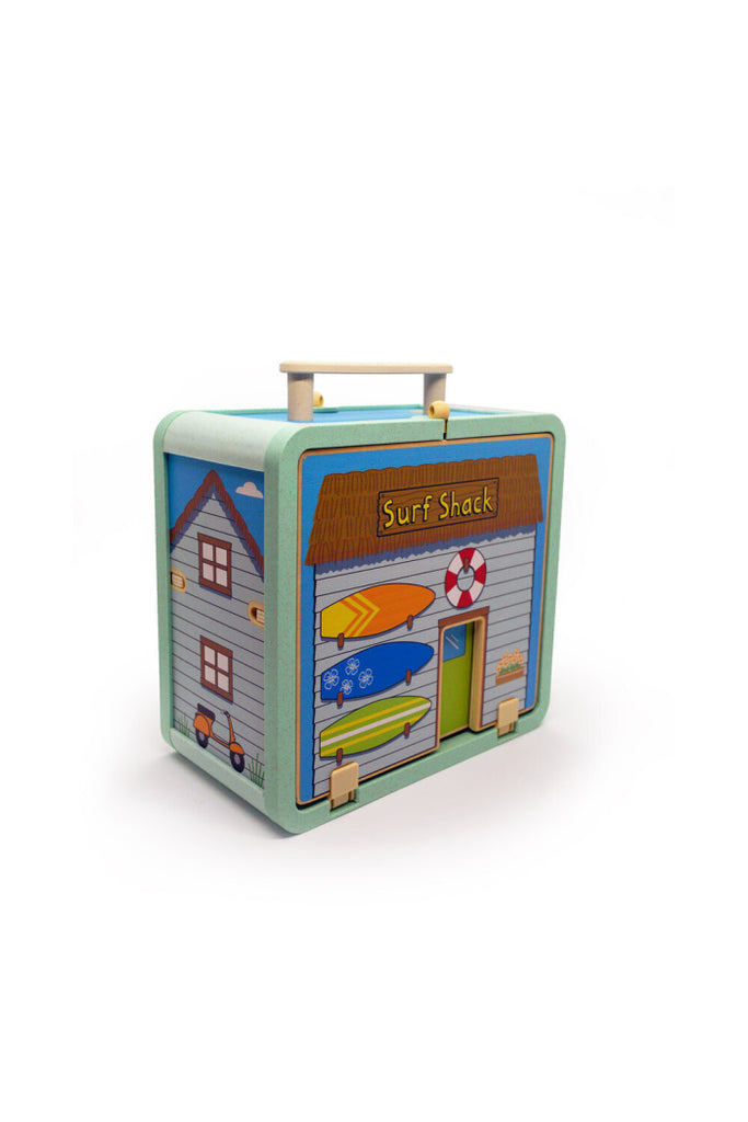 The 17-piece Surf Shack has everything for fun on the go, including surfer kids, surf boards, a dog, dolphin, snack shack, and more!