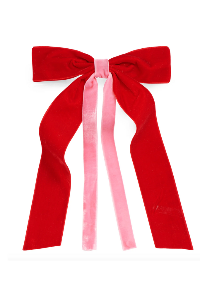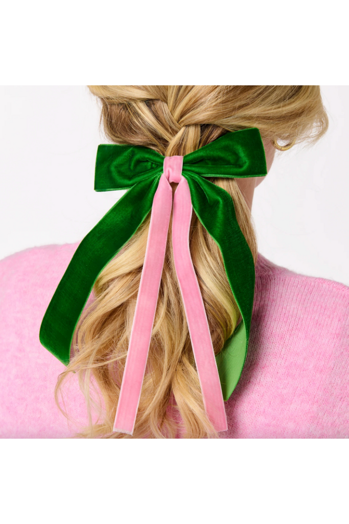 Double the color, double the charm—this Two-Tone Velvet Bow Clip is a playful twist on a classic favorite. With wide, structured ribbon tails and contrasting colors, it adds instant personality to any hair look. Whether you’re going for polished or whimsical, this clip makes a statement with zero effort. Available in eye-catching combinations like red and pink or green and blush.