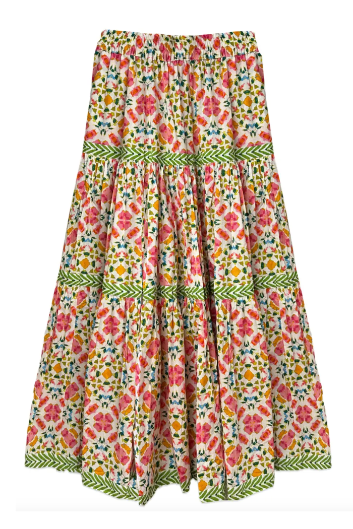 Go big, go bold. Our Tiered Maxi Skirt brings maximalist joy to every sunny-day moment. Designed with a comfortable two-inch elastic waistband, it flows into three gathered tiers of our vibrant, eye-catching Wild Bloom print for the perfect mix of polish and play. Pair it with a simple tank for an easy daytime look or a crisp blouse for dinner al fresco, either way, it’s a guaranteed mood boost.